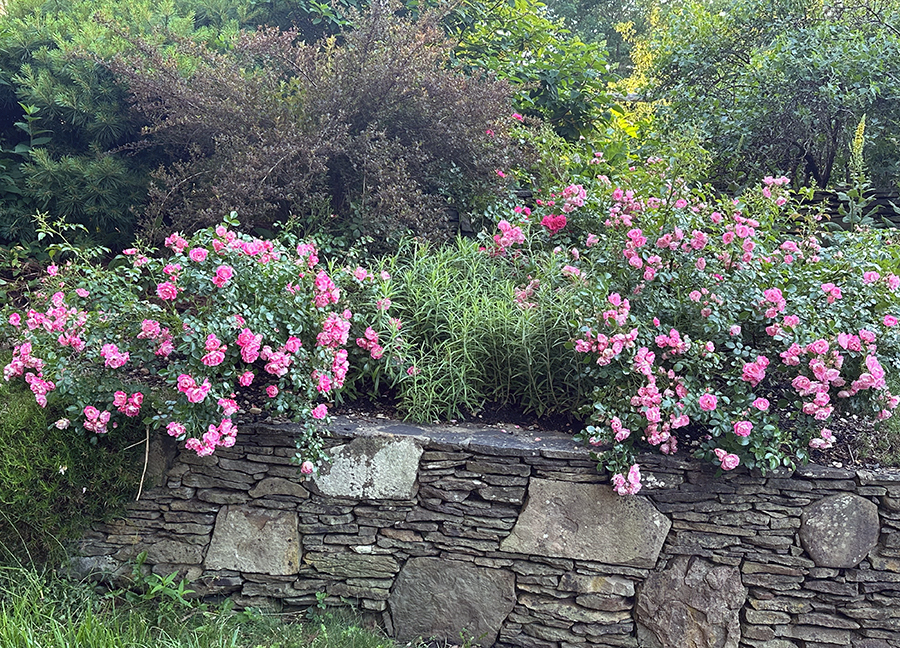 In general, the landscape roses (also called shrub roses) are less work than the hybrid teas. Although most of these don’t require deadheading for repeat flowering, doing so hastens second and third blooming.